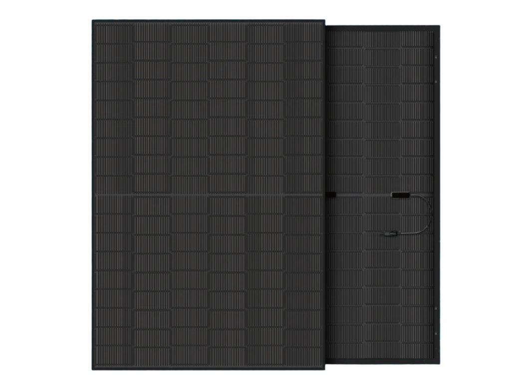 Bifaciálny celočierny fotovoltaický solárny panel AKCOME Solar, N-TOPCon, dvojité sklo, celočierny